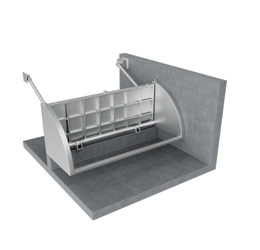 框架和堰門板均由耐腐蝕材料制成。它們配備的支撐鉸鏈由免維護的聚酰胺制成。底部和側面的特殊唇形密封可確保堰門關閉狀態時密封(符合DIN 19569-4標準的密封性要求)。