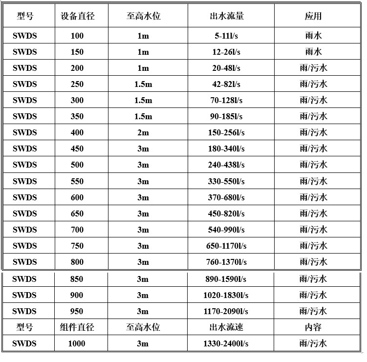 SWDS 100到SWDS 400    與支路壓力管道DN200結合