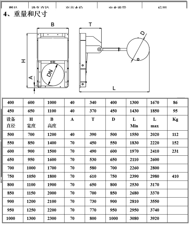 浮筒限流器尺寸的選擇依據是出水流量。如果預期的流量控制可以由多種型號的調流閥來實現,那么可以選擇較小的型號。選擇一個型號時,需要考慮堵塞的可能性,因此閘板和出口底部的間隙越大,堵塞的風險越小。